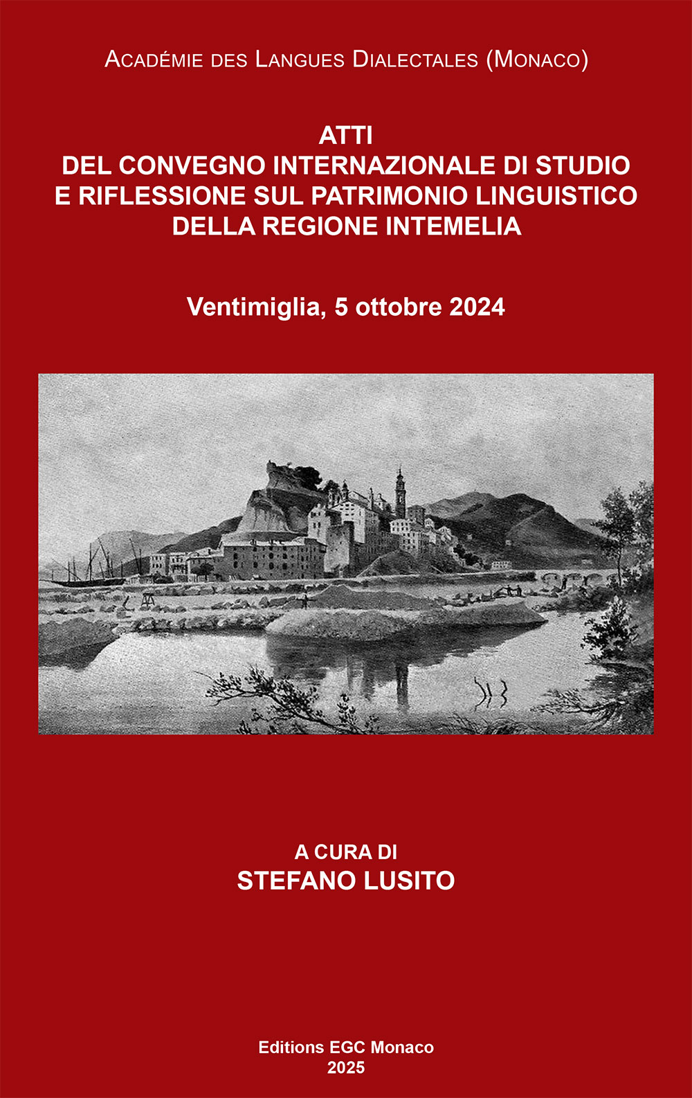 ATTI DEL CONVEGNO INTERNAZIONALE DI STUDIO E RIFLESSIONE SUL PATRIMONIO LINGUISTICO DELLA REGIONE INTEMELIA, VEntimiglia, 5 ottobre 2024, A CURA DI STEFANO LUSITO, MONACO, ACADÉMIE DES LANGUES DIALECTALES, EDITIONS EGC, 2025. FORMAT 145 X 230 MM, 184 PAGES. ISBN 978-2-487557-04-8. |